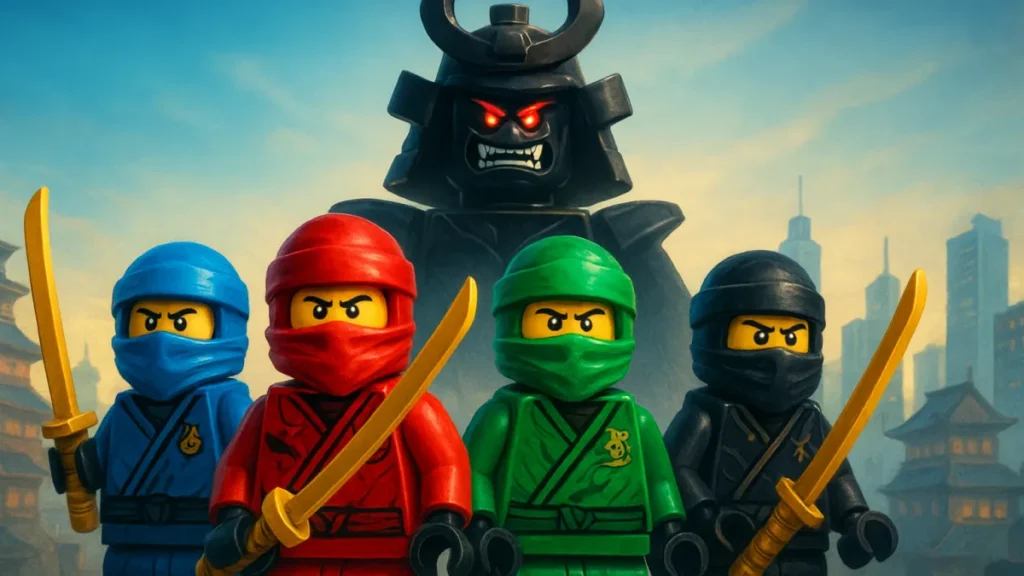 Uma aventura cheia de ação, humor e lições sobre família e coragem com Lego Ninjago: O Filme – Ninjas Protegem a Cidade do Vilão Garmadon.